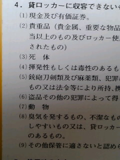 ロッカーの注意事項の、入れてはいけないものに、死体が
